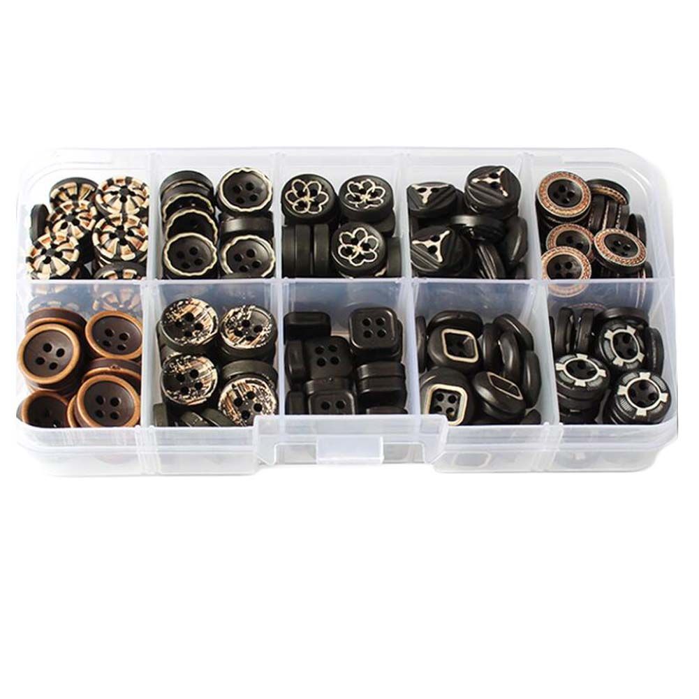 3.Package: Storage box included 10 random pattern buttons, 10pcs per pattern, 100pcs total in a pack.