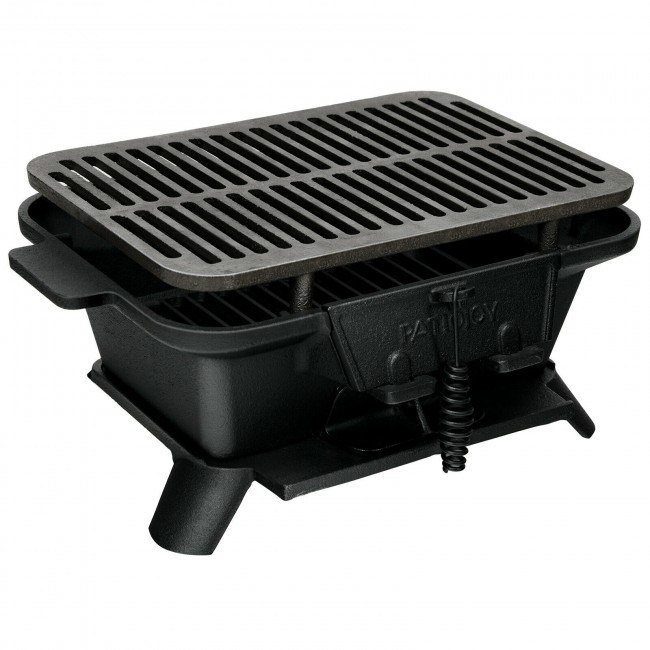 Compact size for easy storage and transportPremium cast iron material to last for yearsGrilling net can be used on both sides for two heightsLarge grilling area for families and friends to useComes with air regulating door to adjust firepowerFront fire gate for safely removing and adding coalDetachable grilling and charcoal net for easy clean-up