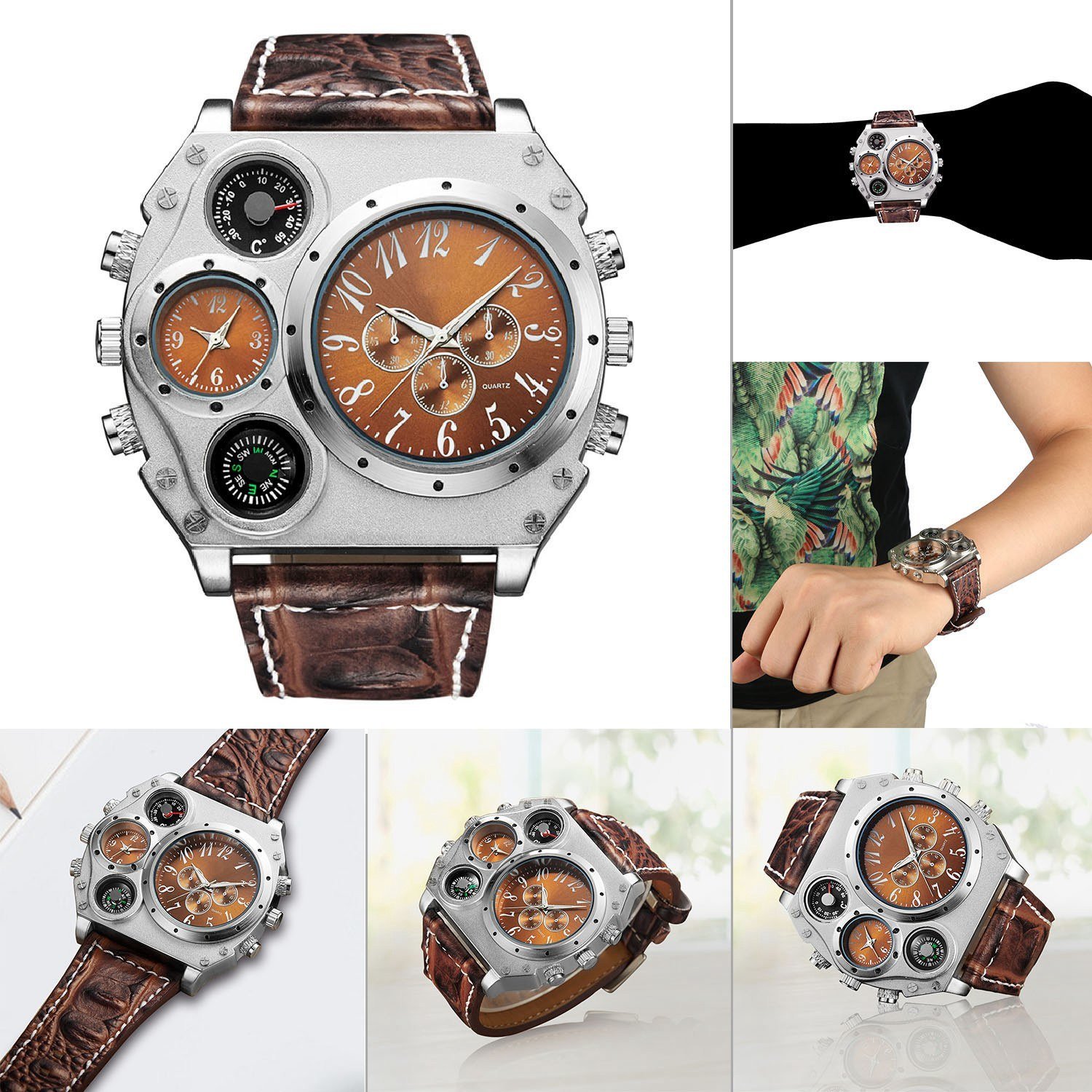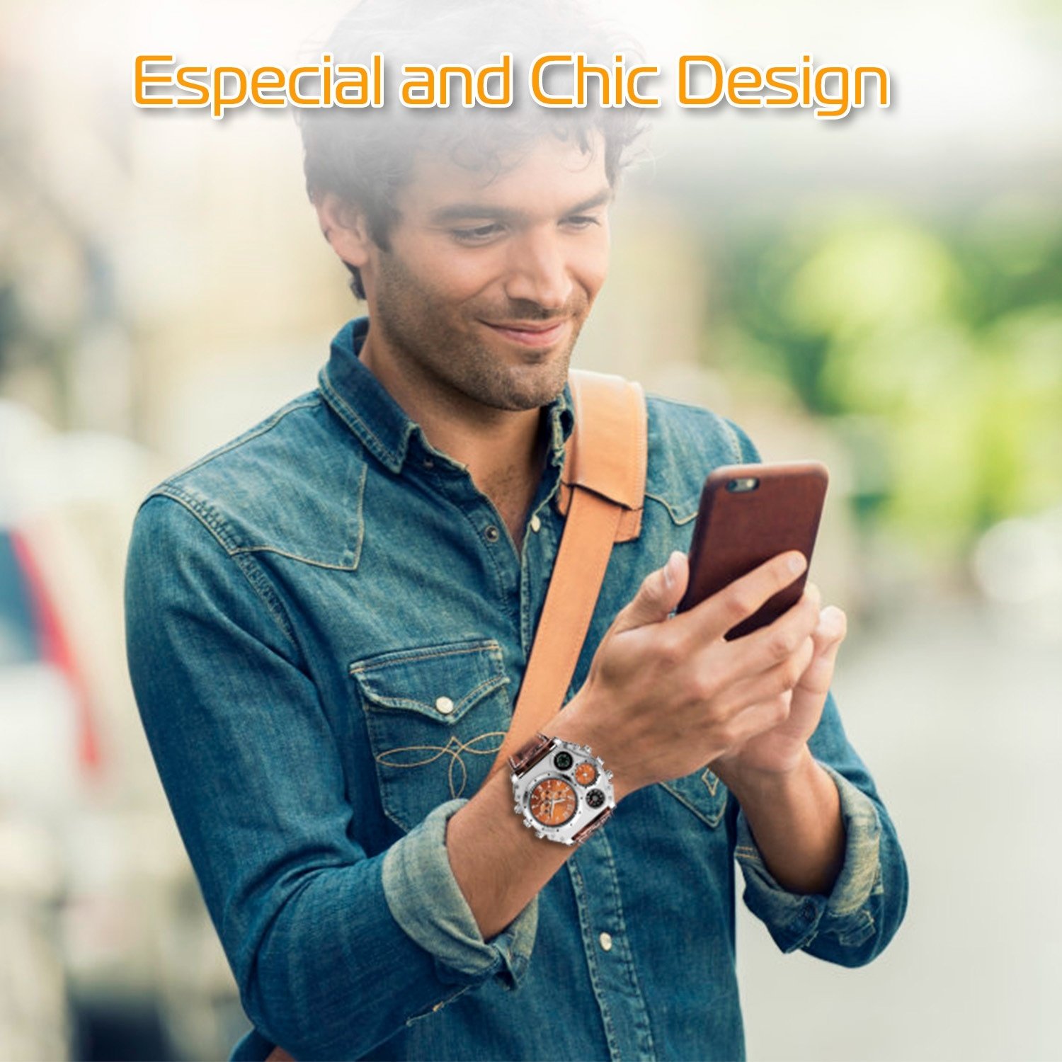 *Stylish Big Face*:Features large face including large time dial,small time dial,compass dial(decoration) and thermometer dial(decoration) to offer you a unique style watch.