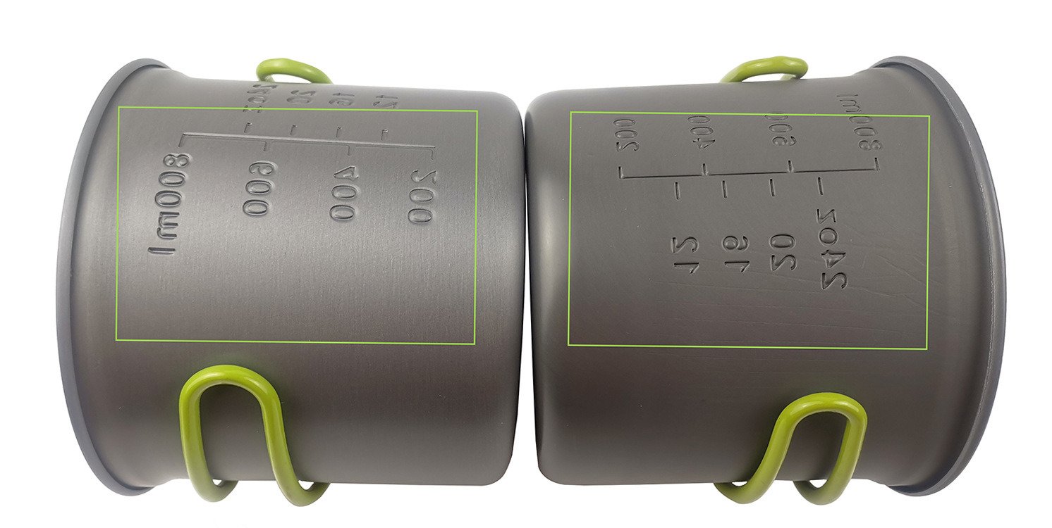 Material: The pot set is made of high-grade hard aluminum-alumina material; the thickness of the aluminum material: 0.8MM; and the tableware is made of stainless steel.
