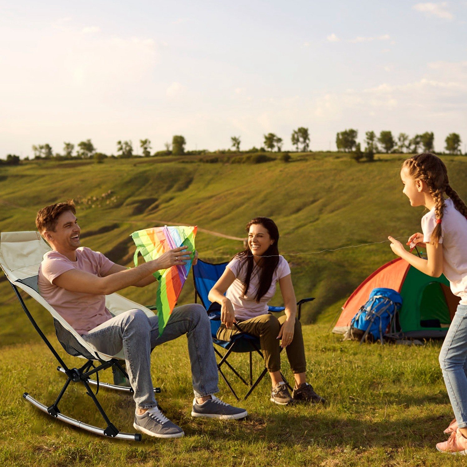 *Wide Applications*:This portable camping rocking chair is perfectly suitable for camping,picnic,sports event,BBQ,hiking,fishing,beach,or just for relaxing at your backyard. And an ideal gift for your friends who are outdoor enthusiasts.