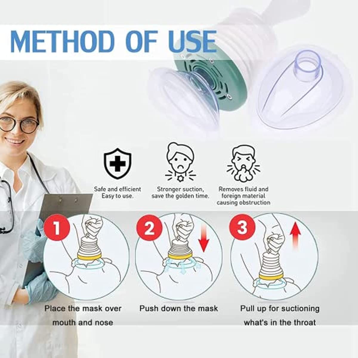 [AIRWAY-CLEARING DEVICE]choking rescue device is a non invasive suction aid device that saves lives in airway obstruction emergencies; simple and practical in daily life. It can effectively remove liquids and foreign objects that cause breathing difficulties. In an airway obstruction emergency; it can give you peace of mind.