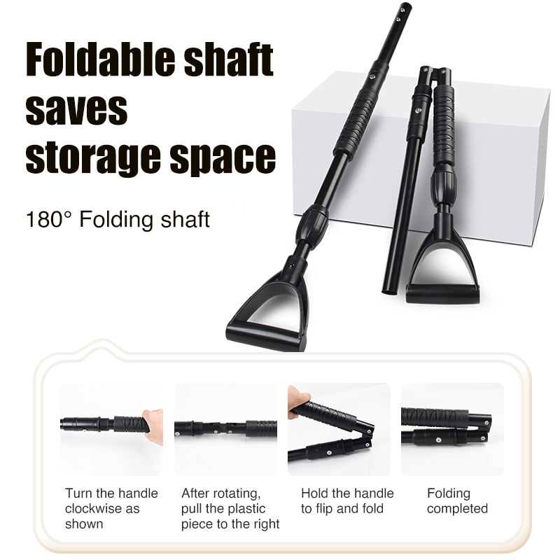 Foldable snow shovel carefully crafted from plastic and aluminum alloy. The aluminum alloy frame ensures strength, and the plastic part is lightweight and non-slip. The perfect combination of the two brings you an excellent use experience.