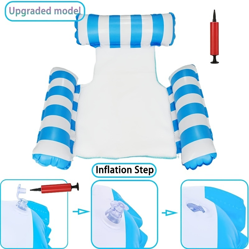 Details: Inflatable Mesh Swimming Chair; Foldable Striped Floating Hammock For Pool Beach Party Summer
