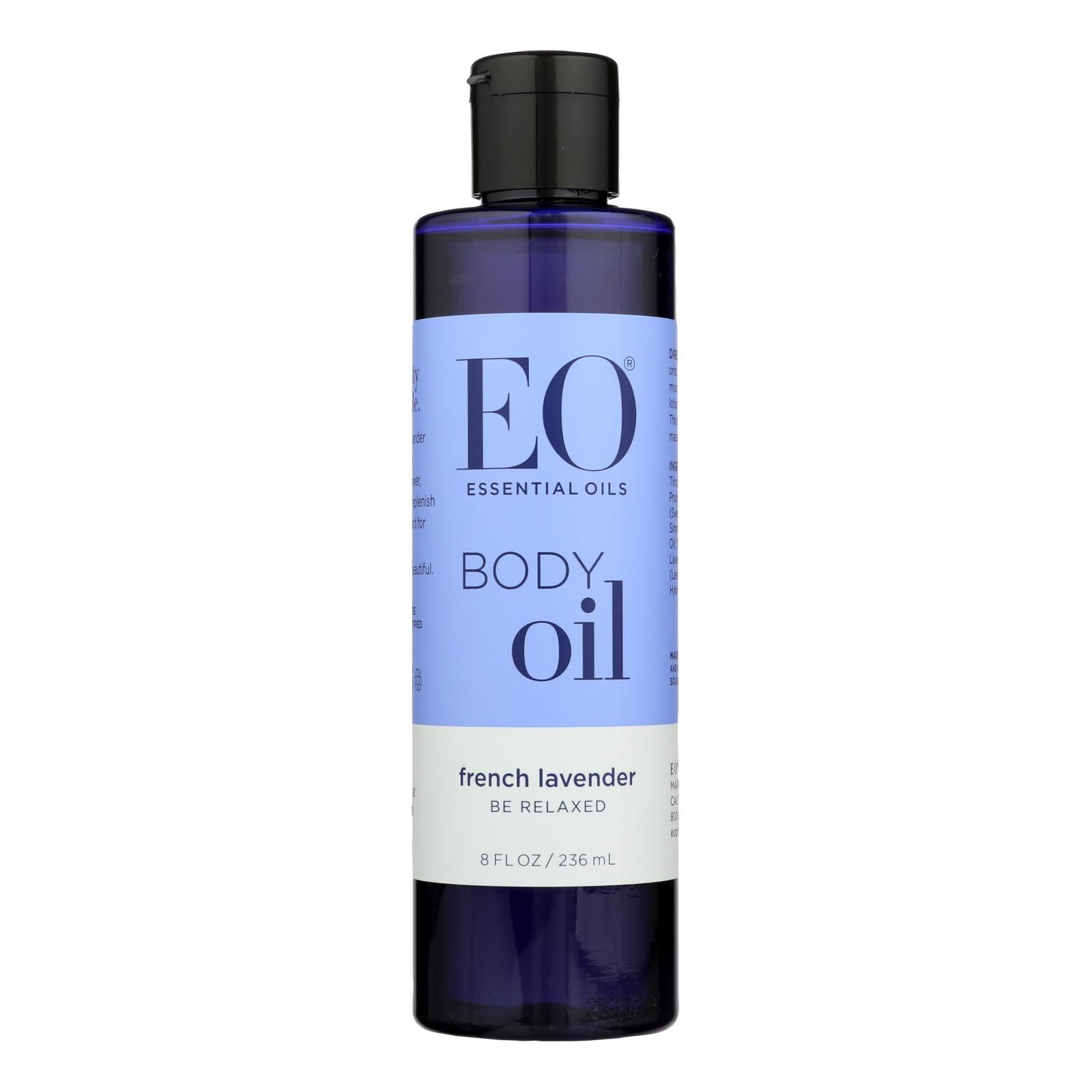 Eo body oil, french lavender is ideal for massage, cuticles or bath. As the scent of pure lavender essential oil relaxes your senses, let jojoba, safflower, and sweet almond oils replenish you. This silky oil perfect for moisture and massage. This product comes in an 8 oz. Bottle and is paraben and phthalates free.