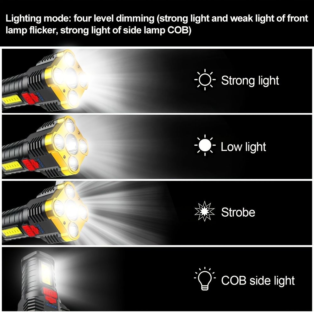 Details: 5 LED Flashlight; USB Rechargeable Strong Light With COB Side Searchlight For Outdoor Travel Emergency
