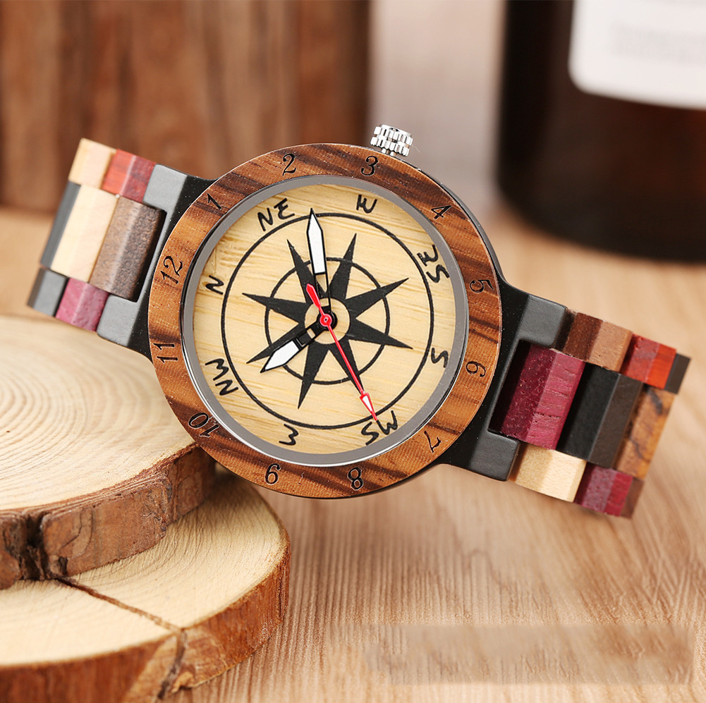 Details: Full Color Wood Compass Plate Men's Lady Couple Watch Personality Scale Men's Watch