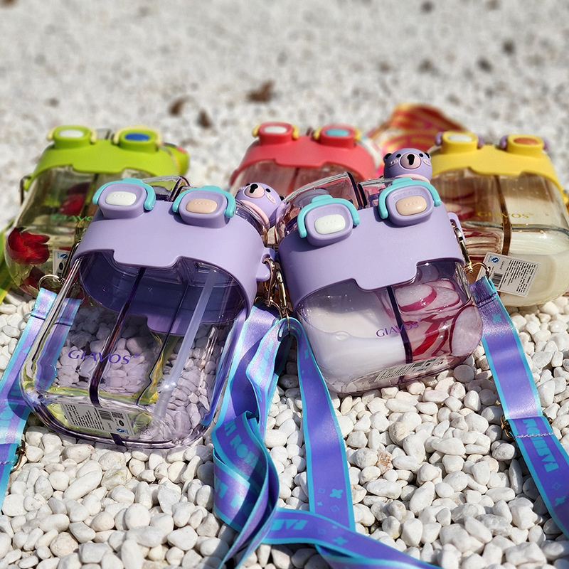 Details: Cartoon Animal Decor Kawaii Water Bottle With Straw & Lips; Leakproof Creative Cute Water Bottle With Adjustable Strap And Stickers For Traveling