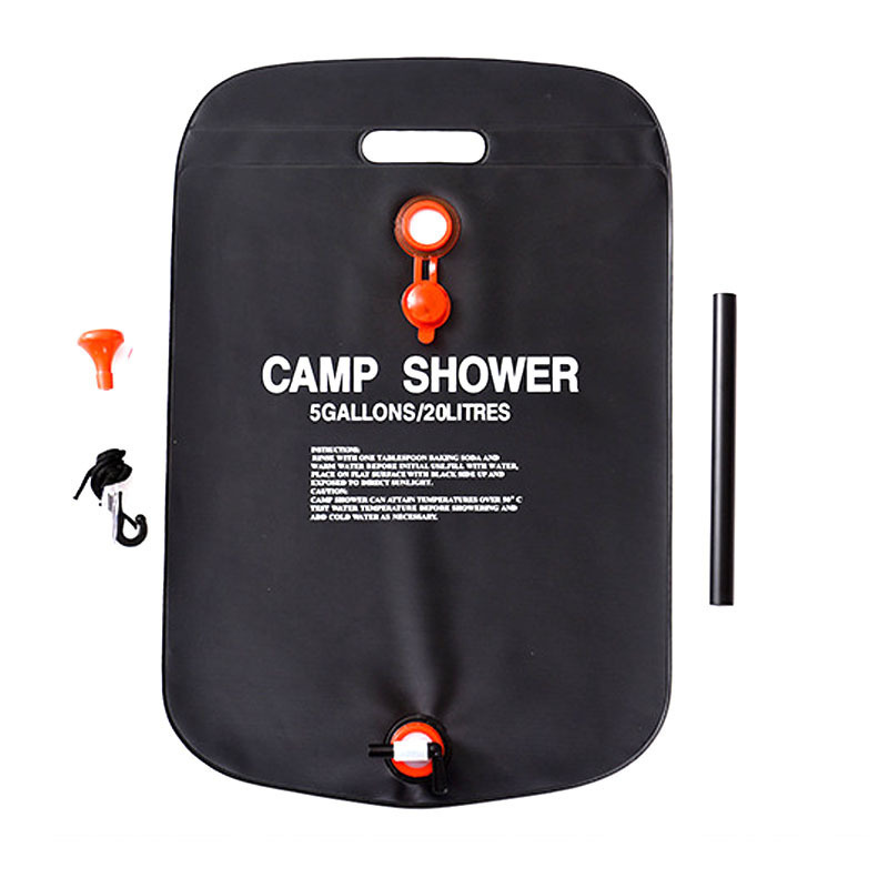 Black PVC material can efficiently absorb the solar energy to heat up the water inside the bag. It heats water to 113°F (45°C) in 3 hours with direct sunlight.
