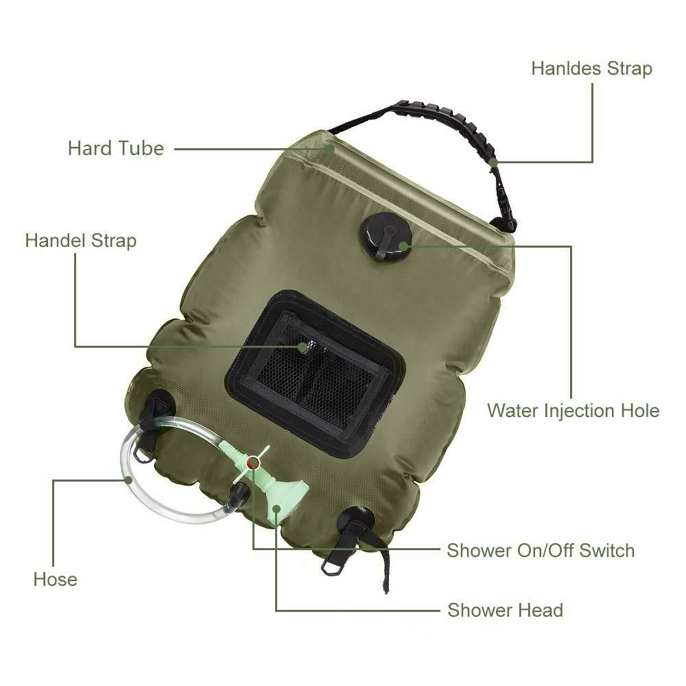 Details: 20L Outdoor Bathing Bag Solar Hiking Camping Shower Bag Portable Heating Bathing Water Storage Bag Hose Switchable Shower Head