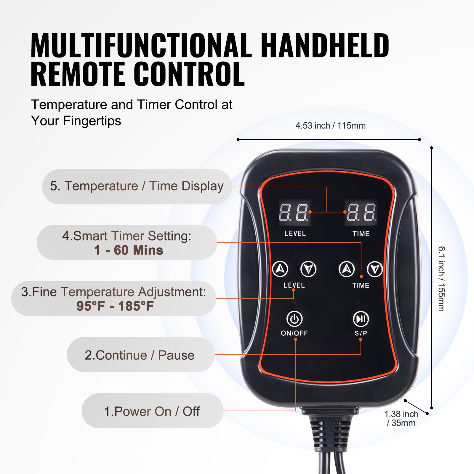 2.Temperature Control and Timer: The multifunctional handheld remote control allows for temperature adjustment from levels 1 to 6 and intelligent timer settings from 1 to 60 minutes. You can choose your preferred temperature and time to fully enjoy the allure of sauna.