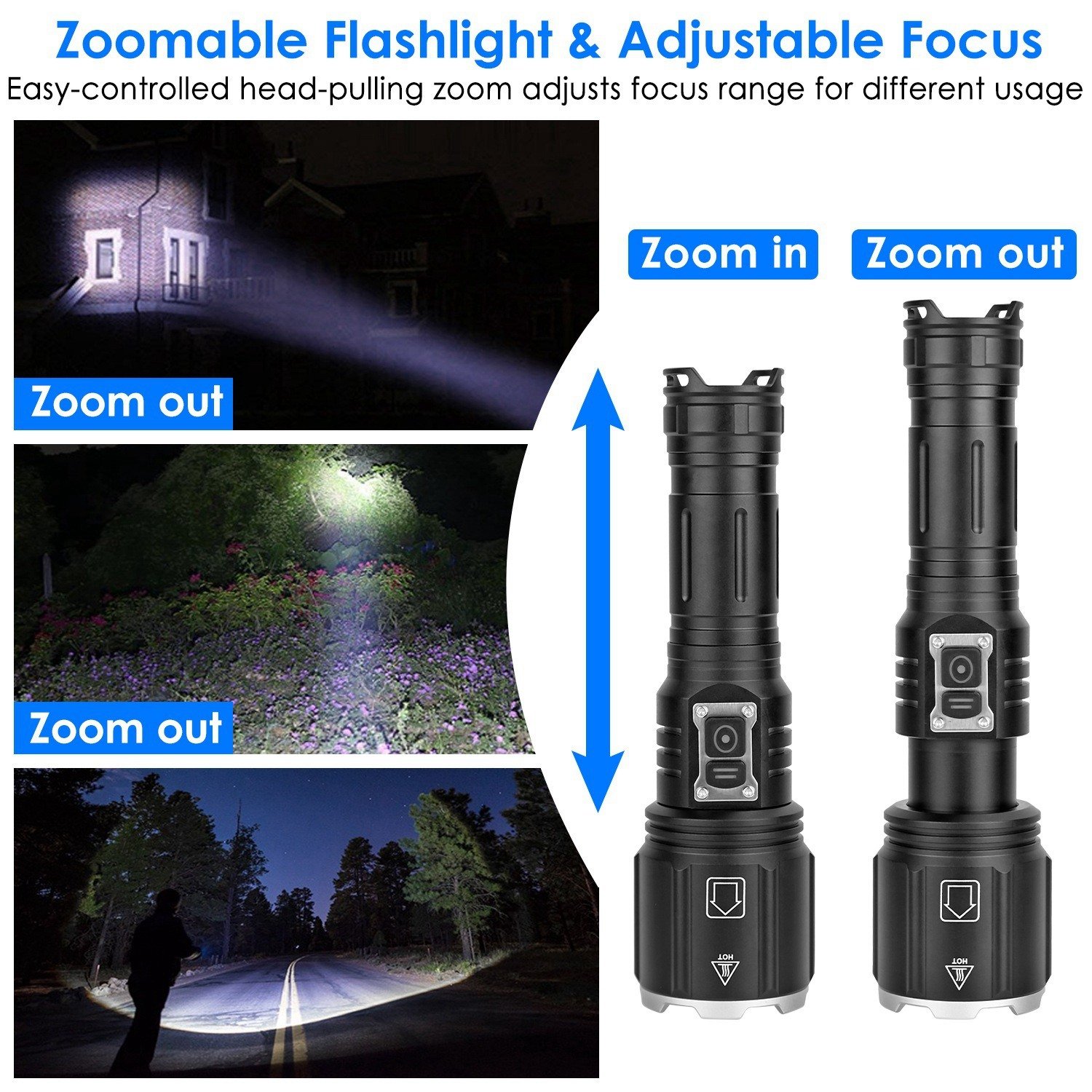 *Multifunctional Flashlight*:When our phone is dead or in low battery; we can use this multifunctional flashlight as an emergency power bank. When we are stalked; we can use it as a self-defense weapon because the ultra-strong or strobe white light can defend ourselves and SOS white light can use for seeking help. When we get stuck; we can utilize its diamond-shaped head structure as a window-breaking hammer to escape.