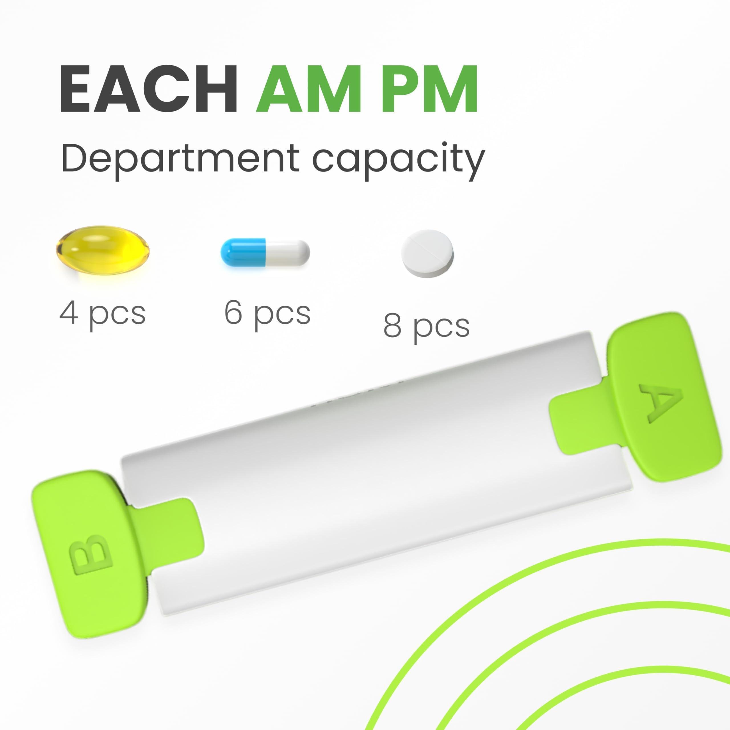 2.am/pm - the compartments of the medicine pill box are divided into morning and night sections. the lids feature convenient 3d labeling, a and b, ensuring that you never mix up your medication